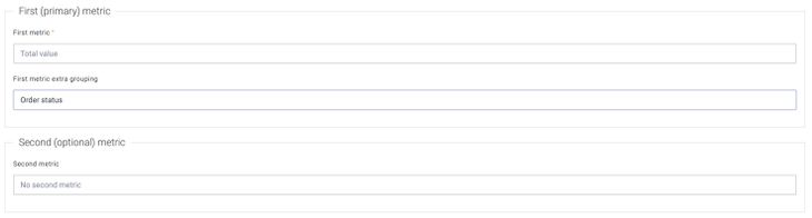 Primary reporting metrics then need to be specified. A primary metric is required to run the report, but a second, optional metric can be defined if required. Extra grouping options are available for each metric.