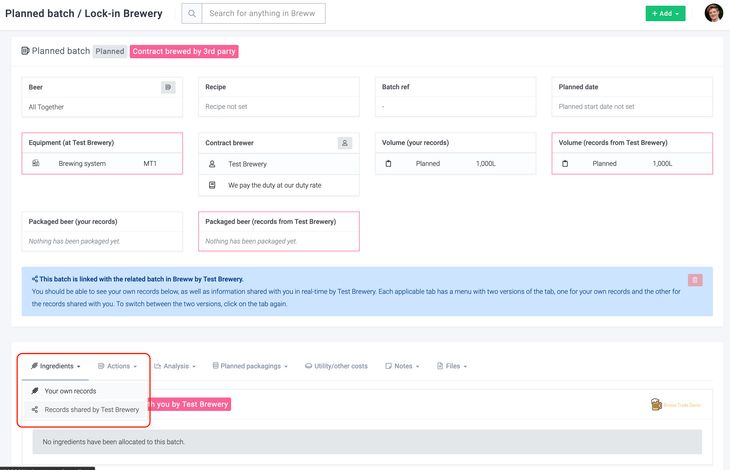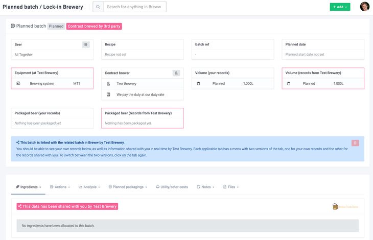 Sensitive information, such as people’s names and costs are never shared. The share is one-way from the brewing brewery (the contract brewer) to the non-brewing brewery and the non-brewing brewery cannot change any of the data shared with them, they can only view it.