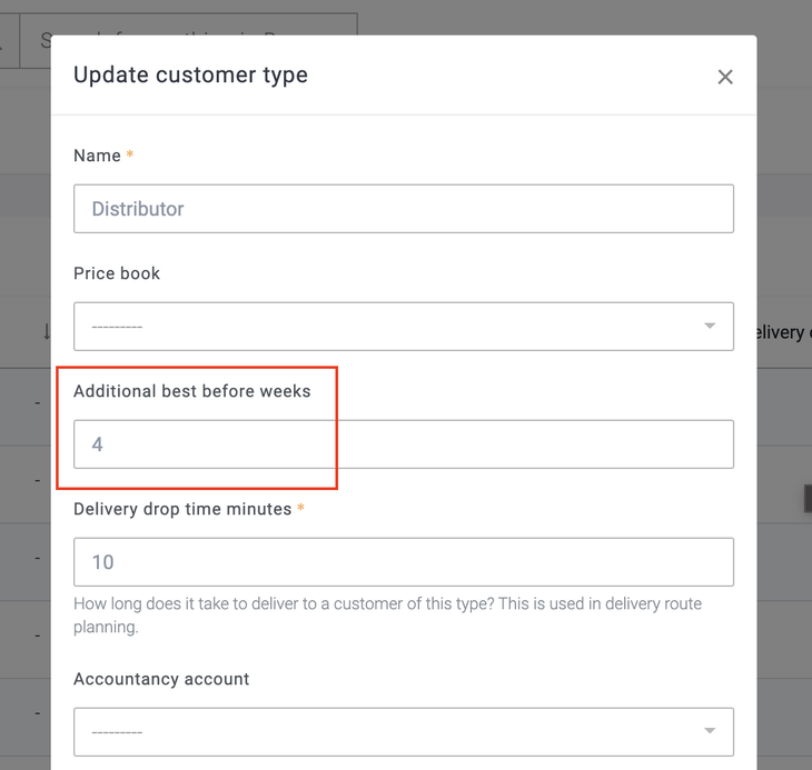 It's possible to add additional time to the best before date, depending on the customer type. Go to Customers -> Settings & tools -> Customer types. Then, click the pencil icon to edit a specific customer type.