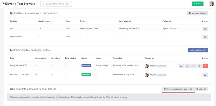 You can add credits for deposits taken from outside/before Breww by going to the customer's page, then onto the Containers & uplift orders tab and clicking Return unrecorded deposits.