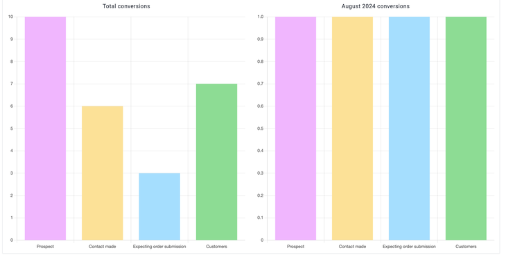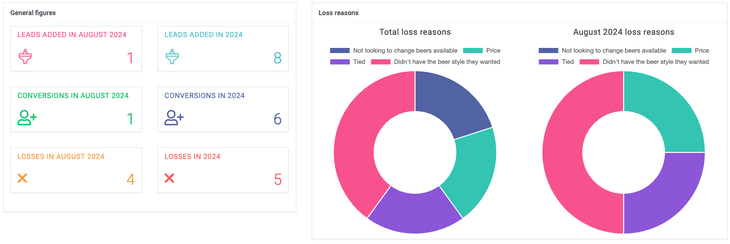 This section contains other handy CRM reports, such as total conversions, lead loss reporting, and activity by sales person.