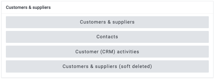 The Customer (CRM) activities report in the Raw data explorer enables you to explore the specific lines of data entered for CRM activities. You can also look at other customer, supplier, lead and contact data via the other reports below. You can filter your data using the BrewwQL filter and export it to Excel.