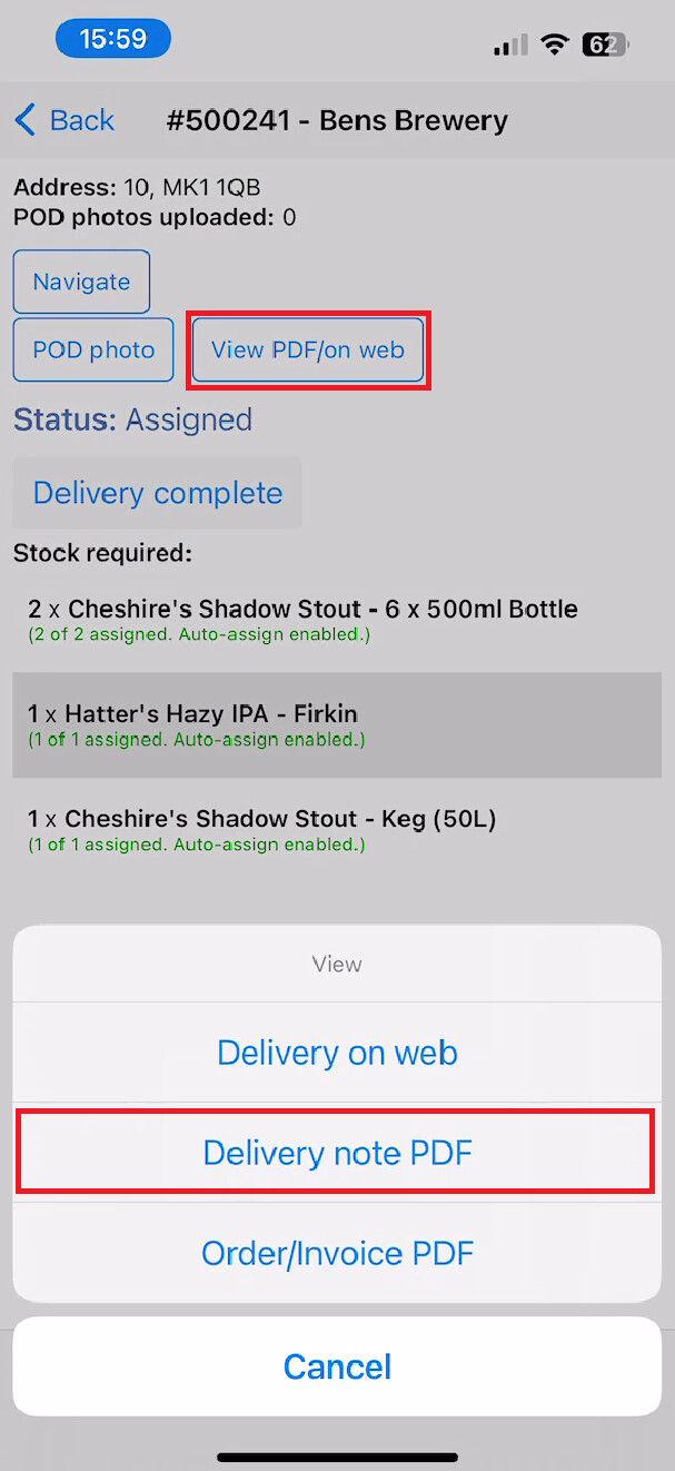 📦 Some of the methods described here allow you to assign stock to deliveries when the driver is already at the customer. If you choose to do this, you will not be able to dispatch the order in Breww until at the customer, as dispatching requires stock to be assigned prior. If you do choose to assign stock at the delivery location the delivery driver can use the app to navigate from delivery to delivery, assigning stock and completing orders on location.