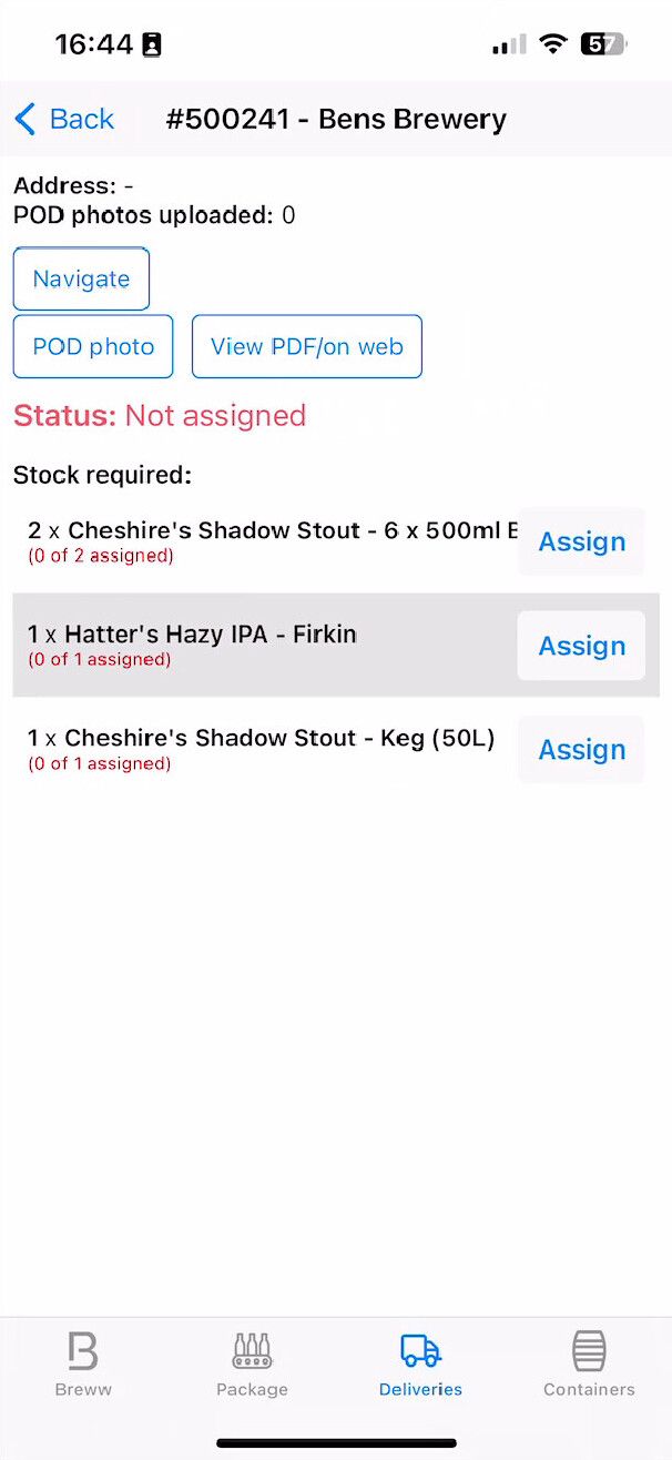 With Breww, there is a great deal of flexibility when choosing how to assign stock to your deliveries. This can be done either using the Breww app or using the web version of Breww on your computer; there is also flexibility to assign stock whilst at the brewery or to assign it at the delivery location.