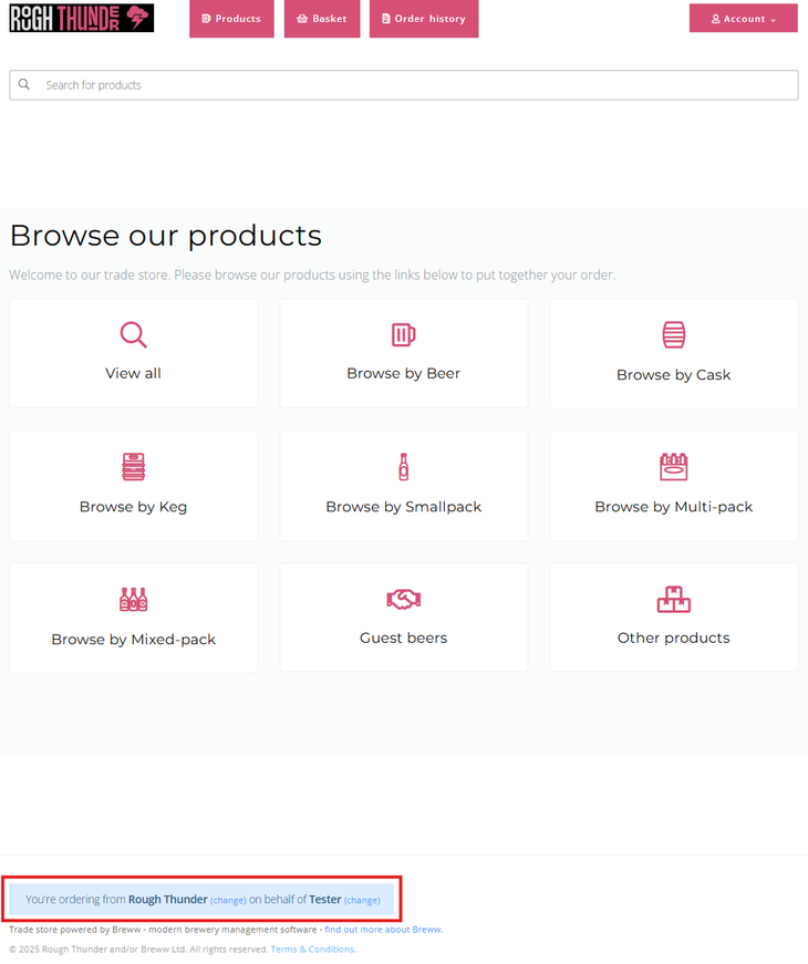 You can grant users the ability to place orders in the Trade Store on behalf of multiple customers in Breww. This is particularly useful when purchasing for different locations or businesses under a parent company.
