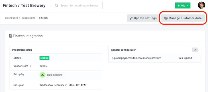 Configuring customer references between Breww and Fintech