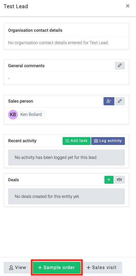 If you are reaching out to leads or have a new product that you have launched that you may want to notify an existing customer about, you will be able to raise a 'Free sample order'. This will mean you can select products to send as free samples to the lead or customer, and when the free sample is sent, the duty will be calculated. You will also be able to schedule these sample orders on your delivery runs.