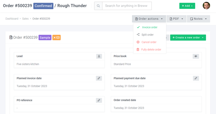 Invoicing an order in Breww can either be done for you by Breww automatically (which we highly recommend) or manually on each order.