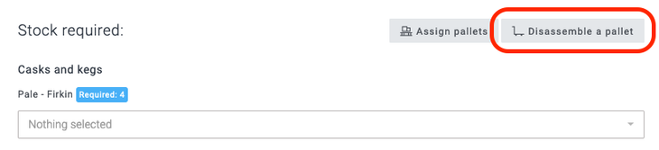 If you go to the product page and then click on the "Stock breakdown" tab, you'll be able to see all the stock and which pallets they're assigned to. In practice, however, when taking the stock, there should be a pallet label on any palletised stock that will show you the pallet code to disassemble so you can assign some of its stock to a delivery.