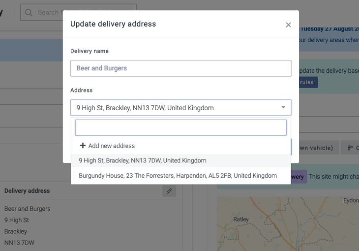 The default billing and delivery address will be the addresses initially set onto an order when it is first created, but any saved addresses can be easily selected when updating the address for one of their orders.