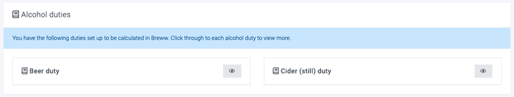 If no duty needs to be paid on this type of drink, select No duty. And if Breww doesn't support the type of duty you need to pay out yet, just select Excise duty, and please get in touch via feature requests asking for the type of duty you'd like to see Breww support!