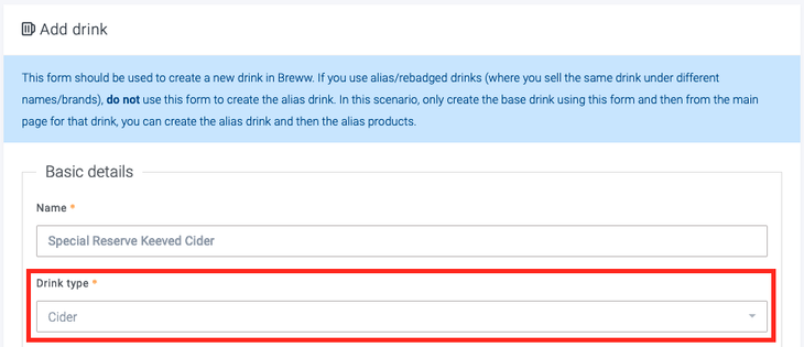 Then, simply name the new drink type and select the type of duty that is payable on this drink.