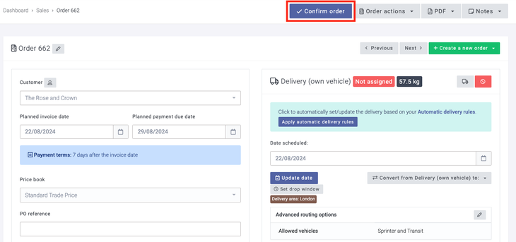 Once you are happy with your order and the customer has confirmed the order, you can select the Confirm order button.
