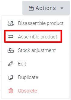 Alternatively, you could head to Products->Tools & reports->Assemble product, where you can select which product you want to assemble.