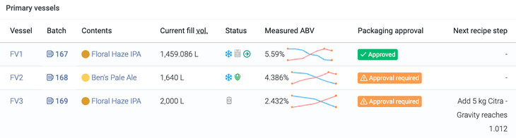 In addition to your 'Vessel visualisation', you can view your 'in progress' batches as a list alongside some key data snapshots related to the batch.