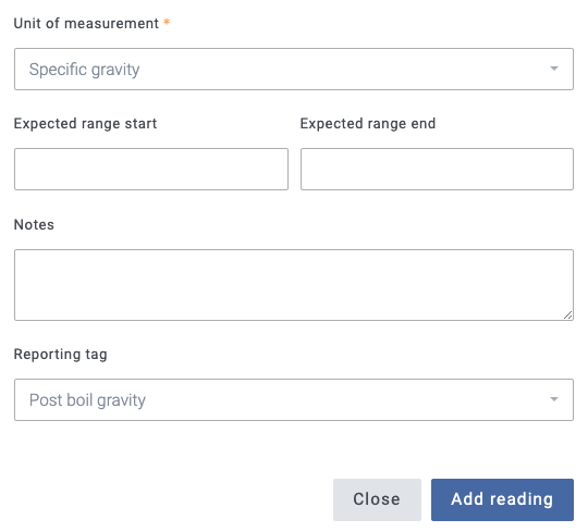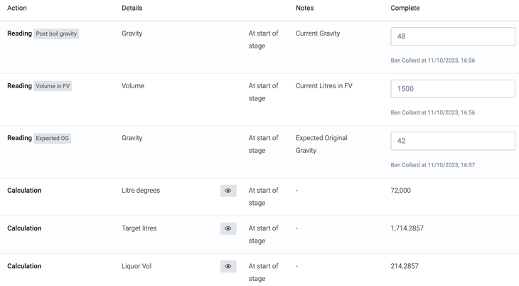 When taking readings, you can also tag these, enabling you to build calculations into your recipe for your brew day. This is also great for reporting, allowing you to report on specific data across your batches.