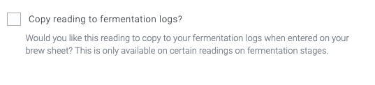 For gravity, pH and temperature readings on stages categorised as Fermenting or Post-fermentation, you can select whether this is passed on to the Analysis tab on the batch. This is particularly handy when entering your OG on your brew sheet, meaning that this is automatically applied.