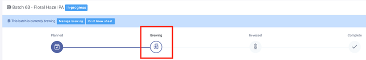 Once you have entered and saved your recipe, this will be set against the beer. The next time you start a batch, you can select the recipe, and Breww will input the ingredients that have been entered against the recipe. You will then have the option to Manage your brew sheet by selecting the Manage brew sheet button or the Brewing symbol on the batch. Here, you will also see a View PDF brew sheet button, where you will be able to print your brew sheet. Our Brew sheets help guide outlines how your brewsheets and brewing page works in Breww.