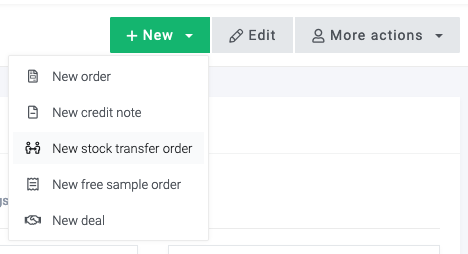 Once this has been enabled on the customer, you'll see an extra button of New stock transfer order under the New menu in the top-right of the customer screen.