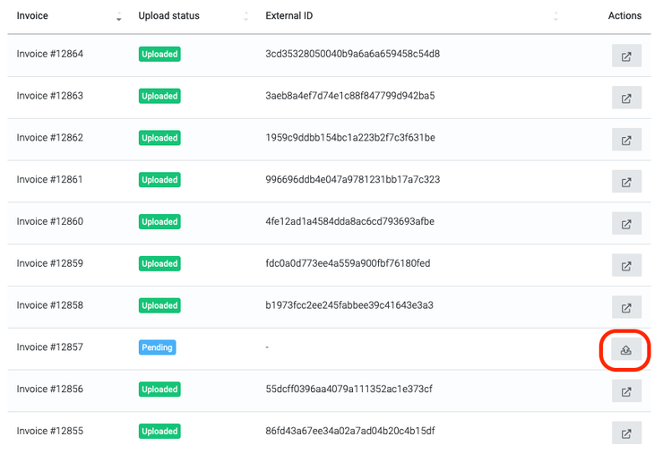 For any invoices that are pending, you do have the option to manually attempt to upload them through the Upload statuses tab, which will initiate another attempt to upload your invoice; this should again usually be completed within 15 minutes.