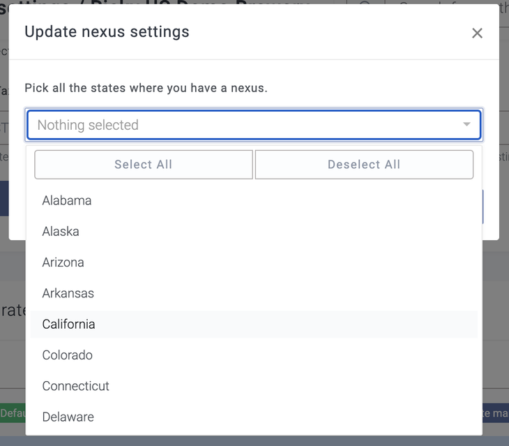 Tell Breww where you are registered to pay tax (Nexuses)