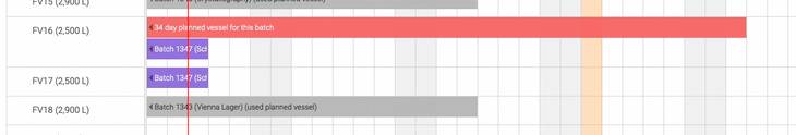 At any time, you can see an overview of all your batches and their vessel usage at Production -> Batch schedule. As you can plan your batches in advance, this is really useful for capacity planning.