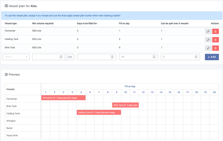 Vessels can either be planned manually or automatically by telling Breww how to plan them (and then tweaked manually if required)